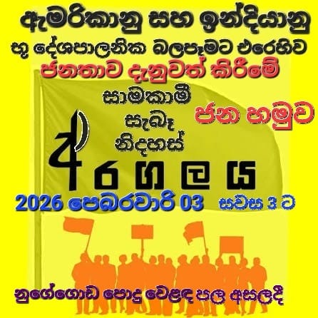 අමෙරිකානු සහ ඉන්දියානු භූ දේශපාලනික බලපෑමට එරෙහිව ජනතාව දැනුවත් කිරීමේ ජනහමුව පෙබරවාරි 3 සවස 3 ට නුගේගොඩ පොදු වෙළෙඳපොල අසලදී..