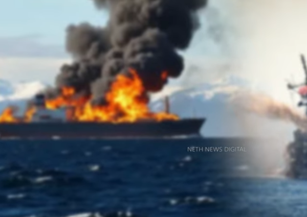 ඉරාන ඉස්ලාමීය වීප්ලවීය ආරක්ෂක බලකාය පවසන්නේ අදාළ නෞකාව මේ වන විට ගිනි ගනිමින් පවතින බවයි.