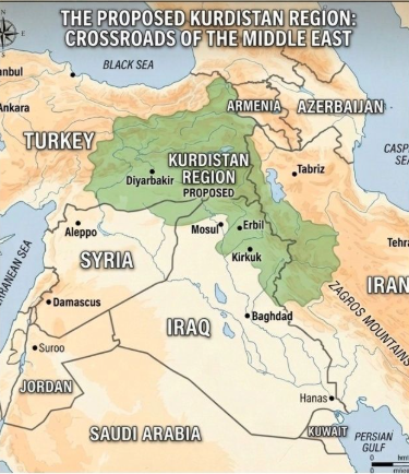 1948 දී අරාබි ලෝකය මධ්යයේ ඊශ්රායලය බිහිවූවාක් මෙන්, ඉරානය, තුර්කිය, සිරියාව සහ ඉරාකය යන ප්රබල රටවල් හතරේම දේශසීමා කපා හරිමින් ස්වාධීන කුර්දි රාජ්යයක් බිහිවීමේ සැබෑ අවදානමක් මතුව ඇති බවට තොරතුරු අනාවරණය වෙයි.