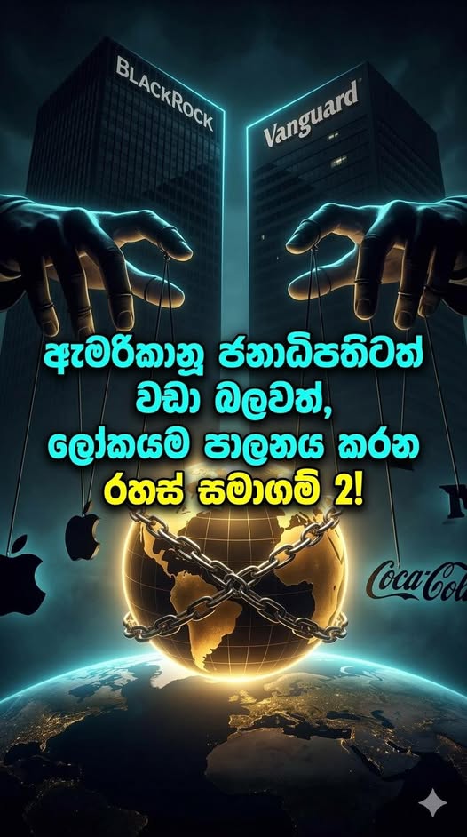 ඔයා පාවිච්චි කරන Apple ෆෝන් එක, බොන කොකා කෝලා එක, ලෙඩ වුණාම බොන බෙහෙත් පෙත්තේ ඉඳන්, ලෝකේ යුද්ධ වලට ගහන මිසයිල දක්වා හැමදේම පාලනය කරන්නේ මේ සමාගම් දෙකයි! ඒ තමයි "BlackRock" (බ්ලැක්රොක්) සහ "Vanguard" (වැන්ගාඩ්). මුළු ලෝක ආර්ථිකයම ගිලගත්තු මේ අදෘශ්යමාන මූල්ය අධිරාජ්යය ගැන ඔබ අනිවාර්යයෙන්ම දැනගත යුතුම කරුණු 5ක් මෙන්න